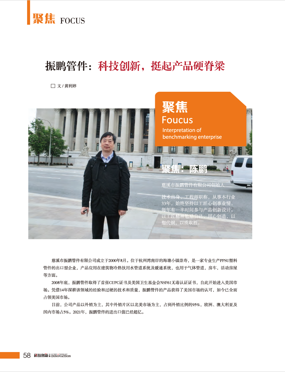Mr. Chen Peng, founder of Zhenpeng, was honored as the cover person of the 25th Journal of Ningbo Association for scientific and technological innovation in the first half of 2022