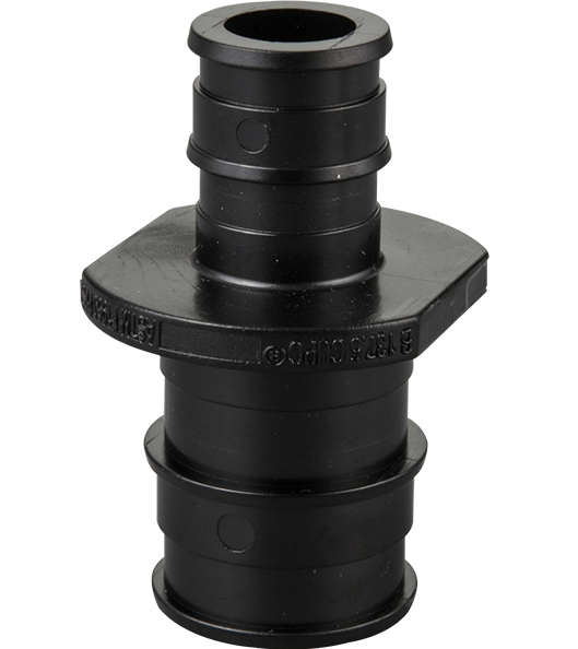 This reducing coupling connects 3/4" to 1/2" PEX-A pipes together in a straight line. Lead-free, approved for potable water applications. Installed using expansion method (expander tool + expansion rings).