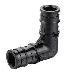 This PEX elbow connects two ends of a 1" PEX-A pipe together at a 90-degree angle. Lead-free, approved for potable water applications. Installed using expansion method (expander tool + expansion rings).