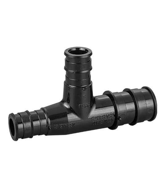 This fitting connects 1" (side) x 3/4" (side) x 3/4" (top/middle) PEX-A pipes together. Lead-free, approved for potable water applications. Installed using expansion method (expander tool + expansion rings).
