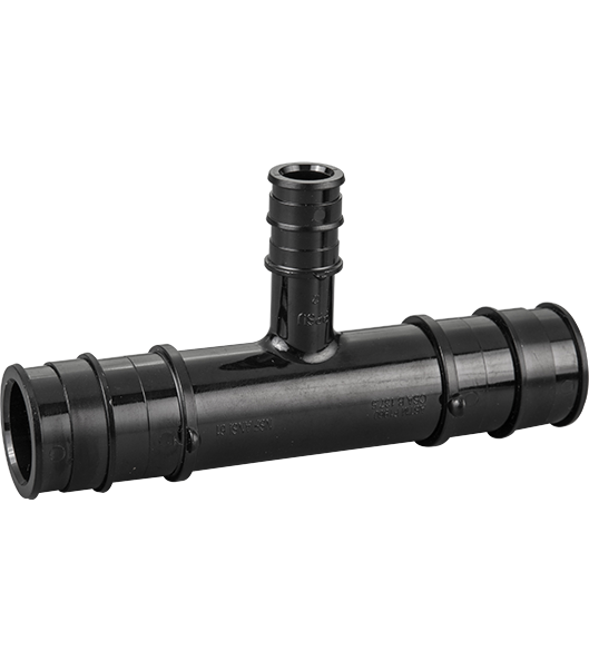 This fitting connects 1" (side) x 1" (side) x 1/2" (top/middle) PEX-A pipes together. Lead-free,approved for potable water applications. Installed using expansion method (expander tool + expansion rings).