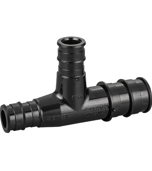 This fitting connects 3/4" (side) x 1/2" (side) x 1/2" (top/middle) PEX-A pipes together. Lead-free,approved for potable water applications. Installed using expansion method (expander tool + expansion rings).
