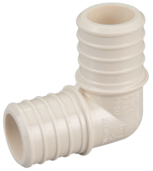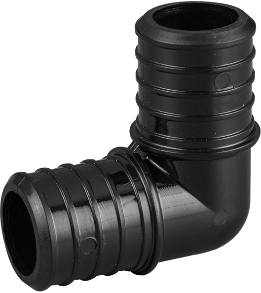1"Poly PEX elbow connects two 1"PEX pipes at a 90-degree.
