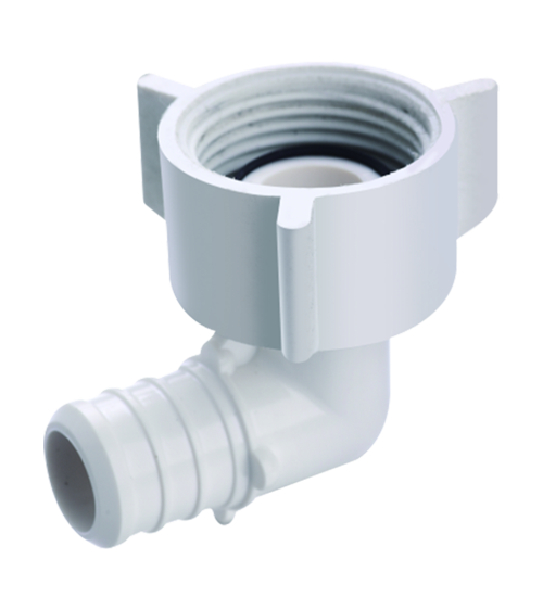This is a lead free swivel elbow fitting with a 90 degrees bend and with 3/4 inch pex connection on one end and a 3/4 inch female threaded FPT connection on the other end.