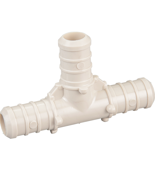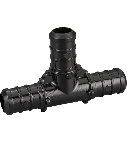 This equal size poly PEX tee connects three 1/2" PEX tubing lines.