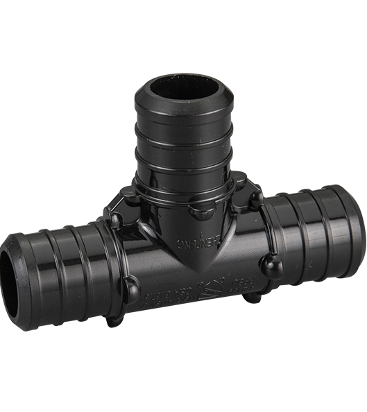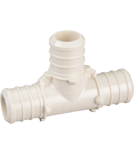 This equal size poly PEX tee connects three 3/4" PEX tubing lines.