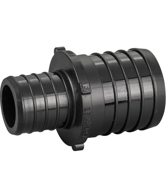 Large diameter Equal crimp style coupling connects 1-1/2"PEX to 1" PEX pipes together.