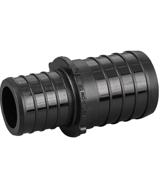 Large diameter Equal crimp style coupling connects 1-1/4"PEX to 1" PEX pipes together.
