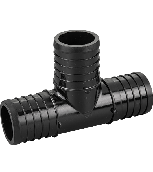 This large diameter equal size poly PEX tee connects (3) 1-1/2" PEX tubing.