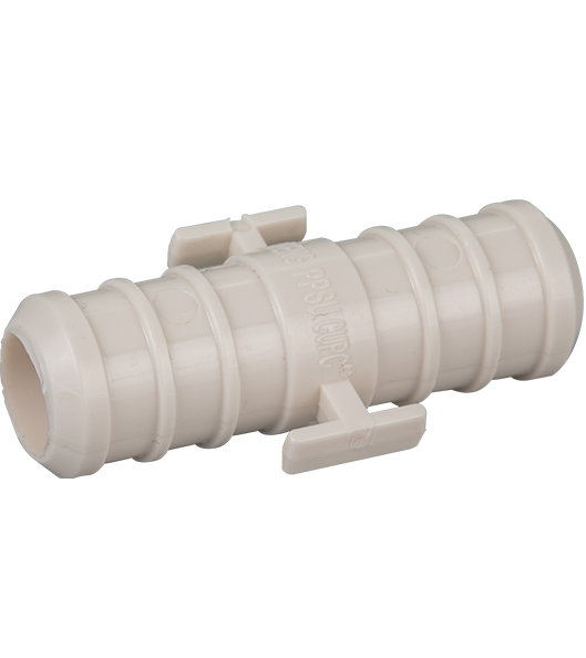 This equal crimp stop coupling connects two 1/2" PEX pipes together.