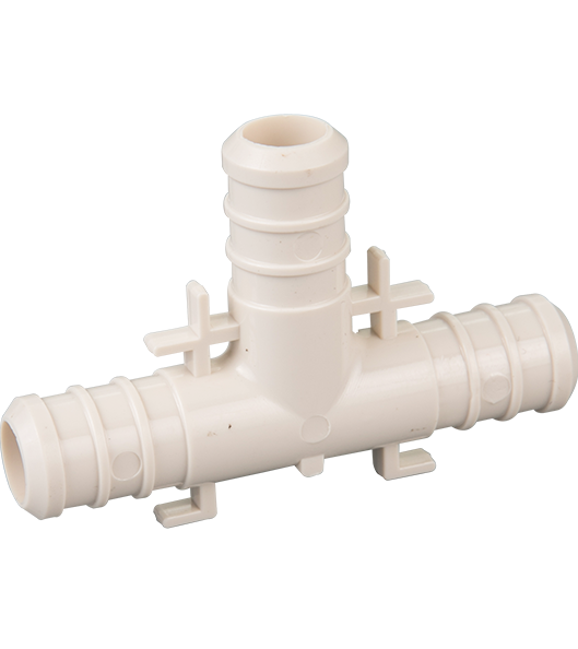 This equal size poly PEX tee connects three 1/2" PEX tubing lines.