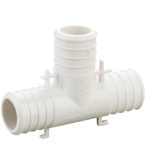 This equal size poly PEX tee connects three 1" PEX tubing lines.