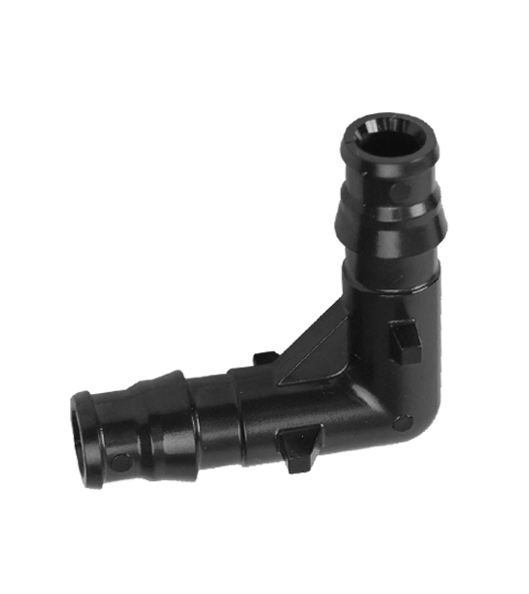 This expansion PEX elbow connects two ends of a 10mm PEX-a pipe together at a 90-degree angle.