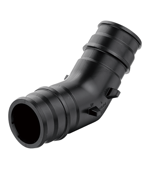 PE135/40-40 - This expansion PEX elbow connects two ends of a 40mm PEX-A pipe together at a 135-degrees angle.Lead-free,approved for potable water applications.Installed using expansion method (expander tool + expansion rings).