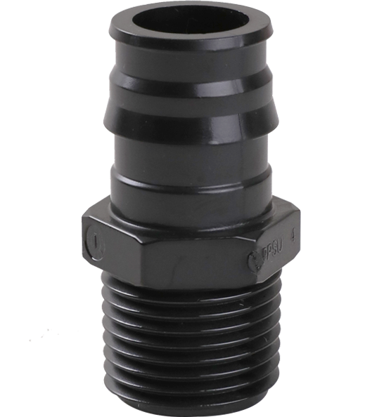 16 PEX × 1/2" MPT adaptor. Installed using expansion method (expander tool + expansion rings).
