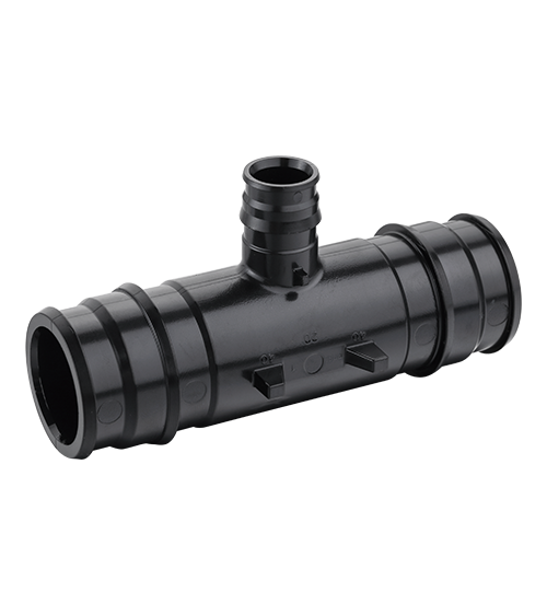 This fitting connects 40 (side) x 20 (middle) x 40 (side) PEX-A pipes together. Lead-free,approved for potable water applications. Installed using expansion method (expander tool + expansion rings).