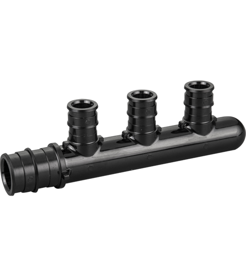 3/4-inch PEX inlet and 1/2-inch PEX outlets, one end open, one end closed, 3 outlets, PEX-A connector, F1960